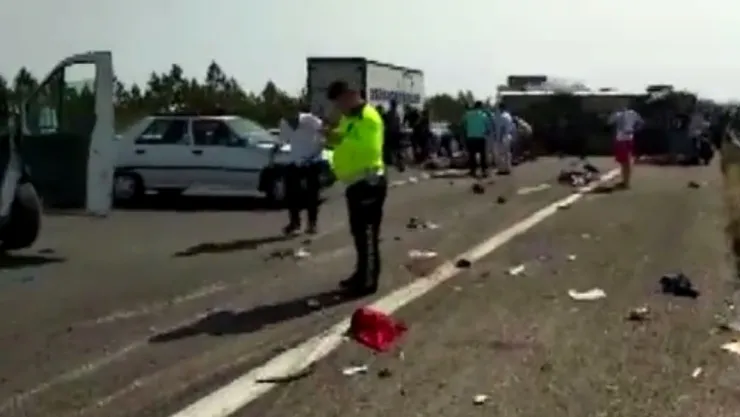 Devrilen araca arkadan başka bir aracın da çarptığı kazada ilk belirlemelere göre 5 kişi öldü, 14 kişi de yaralandı. Edinilen bilgiye göre Kahramanmaraş'ın Elbistan ilçesinden çıkan ve Şanlıurfa'daki 1 Mayıs kutlamalarını taşıyan otobüs, Şanlıurfa Birecik karayolunun 60. kilometresinde kontrolden çıkarak devrildi. Devrilen otobüse sürücüsü belirlenemeyen başka bir araç çarptı. Feci kazada 4 kişi olay yerinde yaşamını yitirirken, 1 kişi de hastaneye kaldırılırken yolda öldü. Araçlarda bulunan toplam 14 kişi ise hastanelere kaldırılarak tedavi altına alındı.