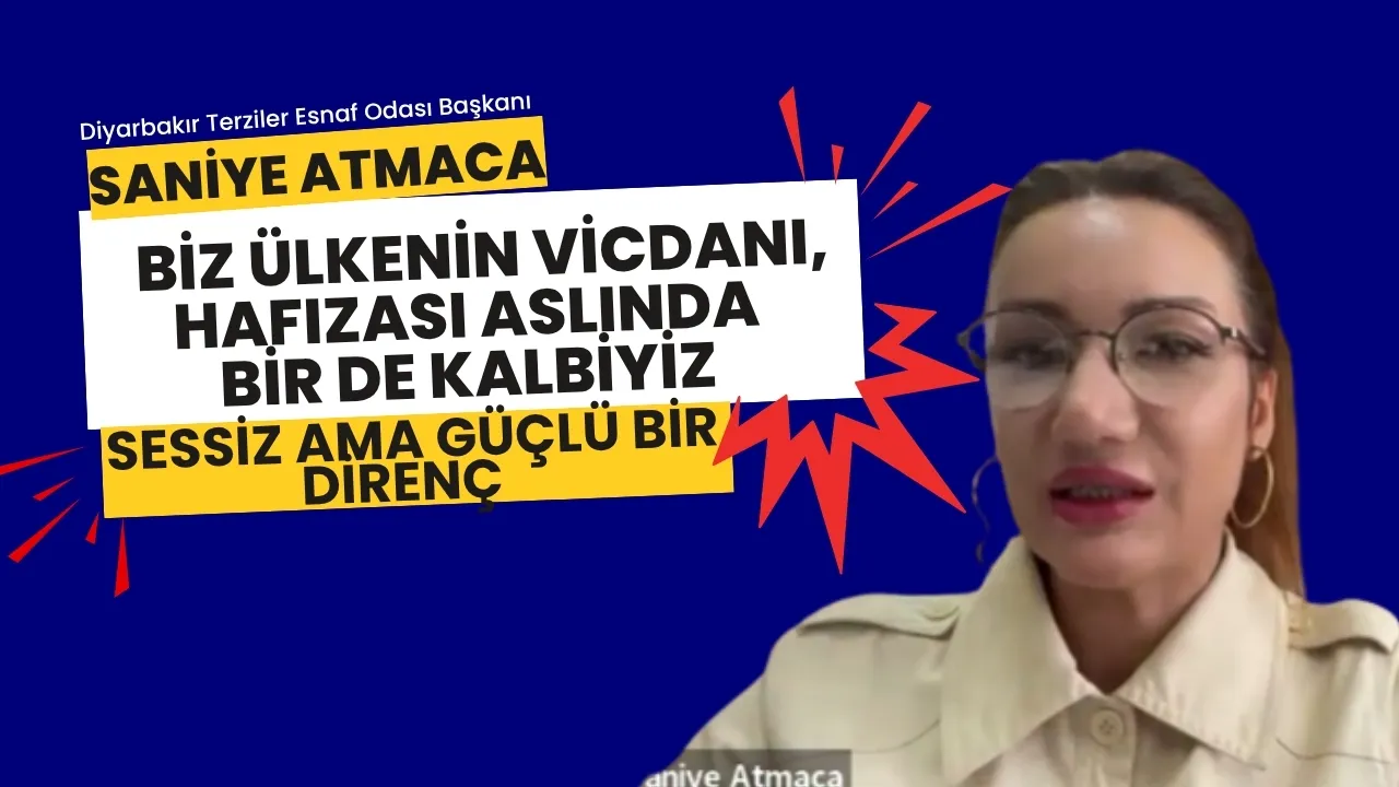 Diyarbakır'ın tek kadın esnaf başkanı olan Terziler Odası Başkanı Saniye Atmaca, 6 Şubat depreminden etkilenen bölgedeki esnafların ekonomik zorluklarla mücadelesini aktarırken, esnaf ve sanatkarların toplumsal değerlerin ve Ahilik ahlakının taşıyıcısı olduğunu belirtti.