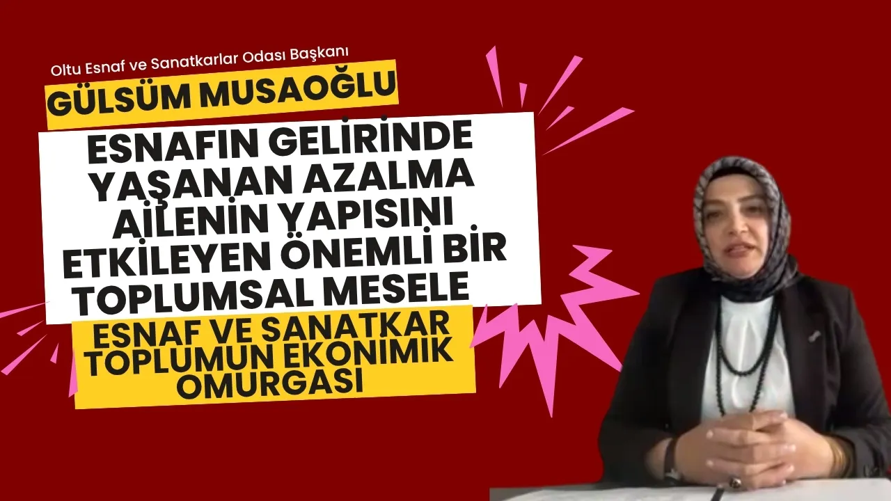 Erzurum Oltu Esnaf ve Sanatkarlar Odası Başkanı Ümmühan Gülsüm Musaoğlu, esnaf ve sanatkarların toplumun ekonomik omurgasını oluşturduğunu ve ailenin geçim yükünü doğrudan omuzlarında taşıdığını belirtti. Esnafın gelirinde yaşanan azalmanın yalnızca ticari bir sorun değil, ailenin yapısını etkileyen önemli bir toplumsal mesele olduğunu vurguladı. Yılbaşında yürürlüğe girmesi planlanan Basit Usul esnafın deftere tabi tutulması uygulamasının ve zincir marketlerin yerel esnafı bitirme noktasına getirdiğini belirterek acil önlem talep etti.