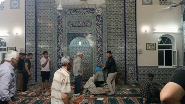 Kobaklar Mahallesi Camisi'nde yatsı namazının ardından mihrabın üzerindeki tuğlalardan yapılmış taç düştü.