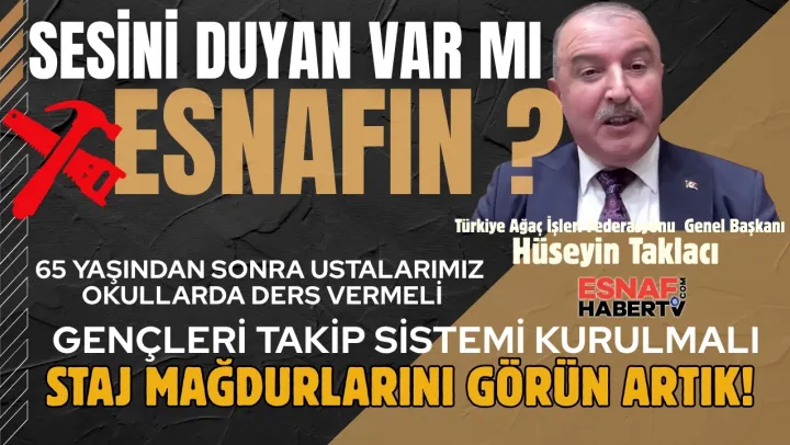 Türkiye Ağaç İşleri Federasyonu Genel Başkanı Hüseyin Taklacı, Dünya Esnaf Sanatkarlar Derneği/Ahi Enstitüsü'nün İçişleri Bakanlığı destekli 'Anadolu'nun Ahisiyiz, Türkiye'nin Ailesiyiz' projesi kapsamında düzenlenen 'Güçlü Aile, Güçlü Esnaf Sanatkar İstihdam Usta-Çırak İlişkisi' konulu çevrimiçi toplantıda gençlerin mesleklere yönlendirilmesi, toplumsal algı sorunları, ağır çalışma şartları ve esnaf teşkilatının yeniden yapılandırılması konularında çarpıcı ve detaylı açıklamalarda bulundu. Taklacı, mevcut sistemdeki sıkıntıların, sanatkârın sesinin duyulmamasına ve ülkenin kalkınmasının engellenmesine neden olduğunu belirtti.