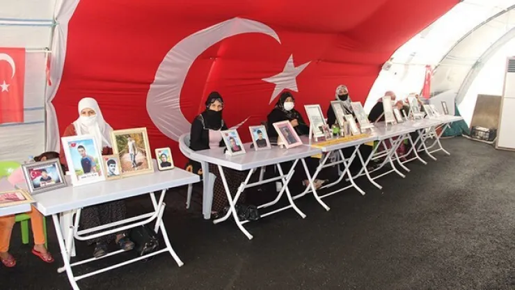 Diyarbakır'da yaşayan Mehmet Akar, geçen yıl 21 Ağustos tarihinde ortadan kayboldu. Akar'ın annesi Hacire Akar, bir gün sonra HDP Diyarbakır il binası önüne geldi. Oğlunun HDP'liler tarafından dağa kaçırıldığını söyleyen anne Akar, il binası önünde oturma eylemi başlattı. Eylemin 3'üncü gününde ortaya çıkan Mehmet Akar, mahkemece ev hapsiyle cezalandırıldı. Oğluna kavuşup, eylemine son veren Hacire Akar, çocukları kayıp annelere çağrıda bulundu. Hacire Akar'ın çocuğuna kavuşması, çocukları terör örgütü PKK tarafından kaçırılan aileler için umut oldu. Akar'ın çağrısıyla harekete geçen çocukları kayıp aileler, 3 Eylül'den itibaren HDP binası önünde oturma eylemine başladı. 15 AİLE, EVLADINA KAVUŞTU Hacire Akar'ın oğlu Mehmet'in yanı sıra eyleme katılanlardan Hatice Ceylan'ın oğlu Cafer, Hüsniye-Hüseyin Kaya çiftinin kızları Mekiye, Halime Kadran'ın torunu Halil İbrahim, Necla-Metin Açan çiftinin oğlu Harun, Nizamettin-Aslıhan Eşrefoğlu çiftinin oğlu Hüseyin, Gevriye Ayhan'ın kızı Pelda, Melik Aslan'ın oğlu Volkan, Muhteber Birlik’in oğlu Veysi, Cahide Alkan'ın oğlu Mehmet Emin, Şahize Altınkaynak'ın kızı Halise Alptekin, Naime Dalmış'ın kızı Tekoşin Açar, Sait Açar'ın oğlu Haşim, Cemal Ertaş'ın oğlu Ramazan örgütten kaçıp, güvenlik güçlerine teslim oldu. Son olarak Sever Fidan'ın oğlu Tayfur Fidan da PKK'nın elinden kaçıp, teslim oldu. Böylelikle oturma eylemine katılıp, evlatlarına kavuşan aile sayısı 15’e ulaştı. Hacire Akar dışındaki aileler, diğer ailelere destek olmak için oturma eylemine devam ediyor. Aileler, eylemleri sırasında, koronavirüs tedbirlerine uyuyor. OTURMA EYLEMİNE 2 AİLE DAHA KATILDI Oturma eylemindeki aile sayısı, Diyarbakır'dan 4 yıl önce 17 yaşındayken kaçırılan oğlu Mehmet Şeyhmus için gelen Semra Talmaç ve Hakkari'den 9 yıl önce 18 yaşındayken kaçırılan kızı Menice için gelen Haklime Turan ile 142'ye yükseldi. Aileler, tedbir amaçlı yapılacak Covid-19 testi sonrası oturma eylemine dahil olacak. 'BAYRAM YAPAMADIK, EVİMİZİ YIKTILAR' Geçen yıl, 17 yaşındayken kaçırılan oğlu Yusuf Bekdaş için evlat nöbetini sürdüren Celil Bekdaş, eylemde 1 seneye yaklaştıklarını belirterek, "Hiçbir haber alamıyoruz. Bayram yapmadık, evimizi yıktılar. Aile sayımız yükseldi. Katılım daha da artacaktır. Çocuğumu bıraksalar da gelemez. Çocuğum hastadır yol, yordam bilmez. Sesleniyorum oğlum yine de gel. Eğer bizi duyuyorsan gel” dedi.
