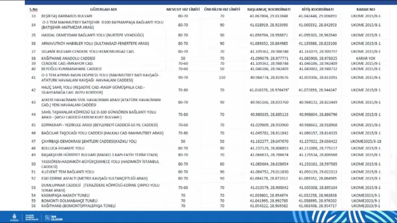 İstanbul'da birçok önemli yolun hız limiti değişti. UKOME kararıyla, Avrupa Yakası'nda 57, Anadolu Yakası'nda ise 27 güzergahın hız sınırları yeniden ele alındı.