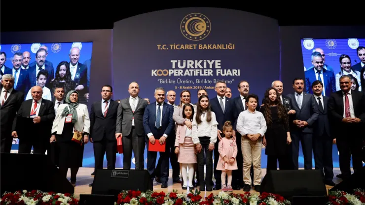 Cumhurbaşkanı Yardımcısı Fuat Oktay konuşmasına, Türkiye’nin kalkınma yolculuğunda, sosyal sermaye ve kooperatifçilik kültürüne daima destek olan Cumhurbaşkanı Recep Tayyip Erdoğan'ın selamlarını katılımcılara ileterek başladı.Kooperatiflerin ihtiyaç duyulan her yerde kurulabilme avantajı sayesinde, yoksulluğun azaltılması ve yerelden kalkınma için etkin bir araç olduğuna dikkati çeken Oktay, sözlerini şöyle sürdürdü: "Küresel anlamda yükselen kooperatif bilinci sonucunda özellikle ABD, Fransa, İngiltere ve Japonya’da kooperatif girişimleri giderek yaygınlaşmıştır. Birleşmiş Milletler tarafından yapılan araştırmaya göre Uluslararası Kooperatifler Birliği’ne bağlı girişimlerin yıllık iş hacimleri 2,5 trilyon doları geçmektedir. Sadece Avrupa Birliği içerisinde yaklaşık 250 bin kooperatif, 5,4 milyon kişiye istihdam sağlamaktadır. Kooperatifçilik alanında bulunan büyük potansiyelin farkında olarak Cumhurbaşkanımızın liderliğinde Türkiye’de kooperatiflerin gelişimine önem veriyoruz. İlgili tüm bakanlıklarımız ve kurumlarımızla kooperatif girişimlerinin sürdürülebilir kalkınmanın altın anahtarı olduğu bilinciyle hareket ediyoruz. Üçüncü çeyrekte 0,9 büyüyerek büyüme eğilimini sürdüren ekonomimizi kooperatiflerin katacağı ivmeyle daha da yükselteceğiz. 2019 yılı Kasım ayında Türkiye genelinde kooperatif sayısı, bir önceki yılın aynı dönemine göre yüzde 3,34 artarak 12 bin 324'e ulaşmıştır. Kooperatiflerin ortak sayısı ise 1 milyon 567 bin 164’e yükselmiştir." Fuat Oktay, Türkiye'de kooperatifçilik hareketinin son dönemde ivme kazanmasından, turizm, su ürünleri, tarım ve enerji gibi farklı sektörlerde faaliyet göstermesinden memnuniyet duyduklarını vurguladı. Ticaret Bakanlığı tarafından yürütülen kooperatif kuruluş işlemlerinin kolaylaştırılması ve kooperatif ortaklarına e-ticaret eğitimleri verilmesi gibi çalışmaların kalkınma hamlesine güç katan adımlar olduğunu bildiren Oktay, bunların yanı sıra Hazine ve Maliye Bakanlığının çalışmaları neticesinde kooperatifler için vergi düzenlemeleri yapıldığını, ortak içi işlemlerin kurumlar vergisinden muaf hale getirildiğini anımsattı. "Kefalet verebilen kooperatif sayısı 913’e ulaştı" Esnaf Sanatkarlar ve Kredi Kooperatifleri aracılığıyla esnaflara yüzde 50 indirimli veya faizsiz olmak üzere kredi imkanları sağlandığını söyleyen Oktay, şu değerlendirmelerde bulundu: "17 yıl önce sadece 402 kooperatif kefalet verebilirken ekim ayı itibarıyla kefalet verebilen kooperatif sayısı 913’e ulaşmıştır. Sadece bu yıl Halkbank aracılığıyla verilen kooperatif kefaletli kredi tutarı 22 milyar liradır. Diğer taraftan Tarım Kredi Kooperatifleri bünyesinde bulunan yaklaşık bin 600 ziraat mühendisiyle ekimden hasada üreticimizin yanında olmaktadır. Tarım Kredi Kooperatifleri, teknik desteğin yanında hasat sonrası çiftçilerimizin ürünlerinin değerlendirilmesi için alım yaparak üreticinin pazarlama sorunlarına çözüm getirmektedir. Halihazırda çiftçinin ürettiği ürünleri doğrudan tüketiciyle buluşturan tarım kredi marketleri sayısı Cumhurbaşkanımızın talimatlarıyla artırılmaktadır ve 2 yıl içinde 500’e ulaşacaktır. Yakın dönemde sebze meyve fiyatlarında yaşanan aşırı artış karşısında, Tarım Kooperatifleri, etkinliği ve tecrübesini ortaya koyarak güzel bir uygulama örneği oluşturmuştur. Bu örnekleri farklı alanlarda faaliyet gösteren kooperatifler üzerinden çoğaltabiliriz. Ancak bugün hangi noktada olduğumuzdan daha önemlisi Türkiye’de kooperatifçiliğin geleceğini nerede gördüğümüz; vizyonumuz doğrultusunda stratejilerimizin neler olduğudur." Cumhurbaşkanı Yardımcısı Fuat Oktay, hedeflerinin kooperatifleri yerli ve milli ekonominin arkasındaki "itici yerel güç" haline getirmek olduğunu ifade etti. Üretken nüfusu kooperatifler aracılığıyla ekonomik hayata kazandırarak yerelde istihdam fırsatlarını artırmayı amaçladıklarını anlatan Oktay, sözlerini şöyle sürdürdü: "Aktif kooperatiflerin sorunlarını iyi analiz ederek sektöre yeni katılacak kooperatiflere tüm kurumlarımızla seferber olarak yol göstermeliyiz. Diğer taraftan kooperatifçi adayları, sermaye ve finansmana erişim yolları hakkında bilgilendirilmelidir. Tüm bunların gerçekleşebilmesi için mevcut kooperatif mevzuatının güncellenmesi yönündeki çalışmaları mutlak suretle hızlandıracağız. Türkiye kooperatiflerinin güçlenmesi, topluma karşı sorumluluk bilincini, dayanışmayı ve refahı toplumuzun tüm katmanlarına yaymaya devam etmesi için biz de hükümet olarak ne gerekiyorsa yapmaya devam edeceğiz." Pekcan: Hedefimiz Kooperatiflerin Ekonomide ve ihracattaki Gücünü Artırmak Ticaret Bakanı Ruhsar Pekcan, konuşmasında, amaçlarının kooperatiflerin üretim kapasitesini artırmak olduğunu belirterek, fuarın, hem iç hem de dış ticarette daha fazla pay sahibi olunmasını sağlamak için yürüttükleri çalışmaların önemli bir aşamasını oluşturduğunu söyledi. Bakanlığın 12 bin kooperatif ve 1,5 milyon kooperatif ortağına hizmet verdiğine dikkati çeken Pekcan, hedeflerinin kooperatiflerin ekonomide ve ihracattaki gücünü artırmak olduğunu, bu yönde ciddi çalışmalar yaptıklarını söyledi. Türkiye'de yaklaşık 49 bin kooperatif ve 6 milyon kooperatif ortağı bulunduğuna işaret eden Pekcan, kooperatiflerin çeşitli konularda 40'a yakın alanda faaliyet gösterdiklerini bildirdi. Pekcan, kooperatiflerin ekonomik yönü kadar sosyal yönü de güçlü işletmeler olduğuna işaret ederek, şöyle konuştu: "Sayın Cumhurbaşkanımızın hassasiyetle vurguladığı 'insanı merkeze alan büyüme' modeline de en elverişli sistem kooperatif modelidir. Kooperatifler aynı z