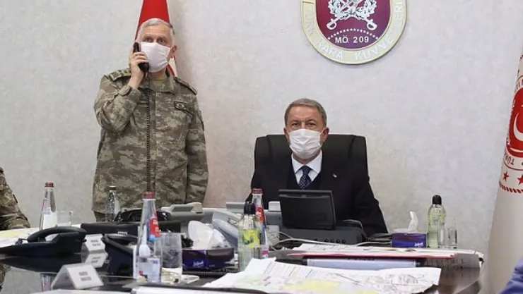 Halkın ve hudutların güvenliğini tehdit eden PKK ve diğer terörist unsunları etkisiz hale getirmek için Türk Silahlı Kuvvetleri tarafından Pençe-Kaplan Operasyonu başlatıldı. Hava Kuvvetleri, ateş destek vasıtaları, ATAK helikopterleri İHA ve SİHA’larla desteklenen komandoların hava hücum harekatıyla bölgeye intikal ettiği Pençe-Kaplan Operasyonu'nu Milli Savunma Bakanı Hulusi Akar ile TSK Komuta Kademesi anlık takip ediyor. Harekat öncesinde brifing ile sahadaki son hazırlıklara ilişkin bilgi alan Akar ile Genelkurmay Başkanı Orgeneral Yaşar Güler, Kara Kuvvetleri Komutanı Orgeneral Ümit Dündar, Hava Kuvvetleri Komutanı Orgeneral Hasan Küçükakyüz ve Deniz Kuvvetleri Komutanı Oramiral Adnan Özbal, harekatı Kara Kuvvetleri Komutanlığı Harekat Merkezi'nden sevk ve idare ediyor.
